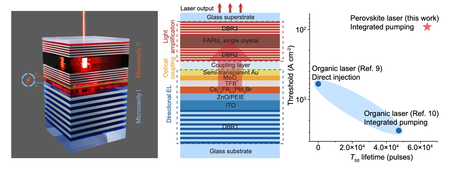 সেমিকন্ডাক্টর লেজারকম্পিউটিং গুরুত্বপূর্ণ আলোর উৎস। Perovskite সেমিকন্ডাক্টর হল কম অপারেটিং খরচ এবং সিলিকন-ভিত্তিক অপটোইলেক্ট্রনিক প্ল্যাটফর্মে সহজে একীকরণ সহ লেজার উপকরণগুলির একটি নতুন শ্রেণি। তাদের টিউনযোগ্য নির্গমন স্পেকট্রা অপটিক্যালি চালিত লেজারগুলিকে সর্বনিম্ন সম্ভাব্য লেসিং থ্রেশহোল্ডে পৌঁছানোর জন্য সক্ষম করে, উল্লেখযোগ্য প্রযুক্তিগত সুযোগগুলি উন্মুক্ত করে। লেজারগুলি চালানোর জন্য প্রয়োজনীয় বাহ্যিক শক্তি সাধারণত দুটি আকারে সরবরাহ করা হয়: বৈদ্যুতিক শক্তি এবং অপটিক্যাল শক্তি। যাইহোক, অপটিক্যাল নিয়ন্ত্রণের জন্য সাধারণত উচ্চ-মানের বাহ্যিক আলোর উৎসের প্রয়োজন হয়, যা কার্যকরী ডিভাইসের সংখ্যা সীমিত করে। বৈদ্যুতিকভাবে চালিত পেরোভস্কাইট লেজার তৈরি করা পেরোভস্কাইট অপটোইলেক্ট্রনিক্সে একটি মৌলিক চ্যালেঞ্জ।